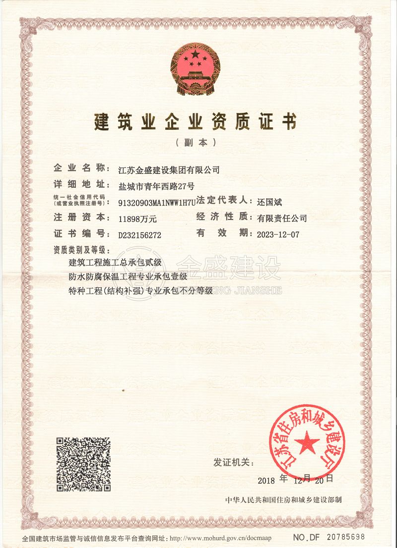 施工總承包貳級(jí)新防水防腐保溫工程專(zhuān)業(yè)承包一級(jí)
