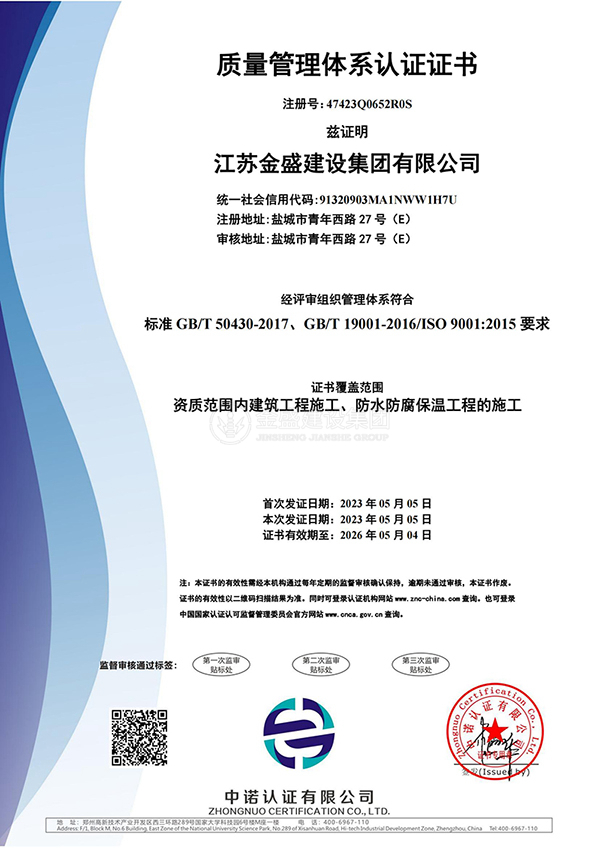 質(zhì)量管理體系認(rèn)證證書(shū)